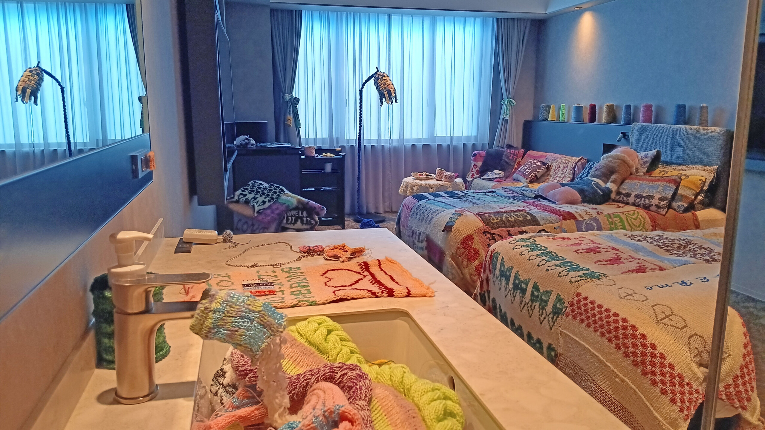 Occasionally, the hotel hosts artist-in-residence programs, and during my stay, the knitwear in room 155 was a sight to be seen.