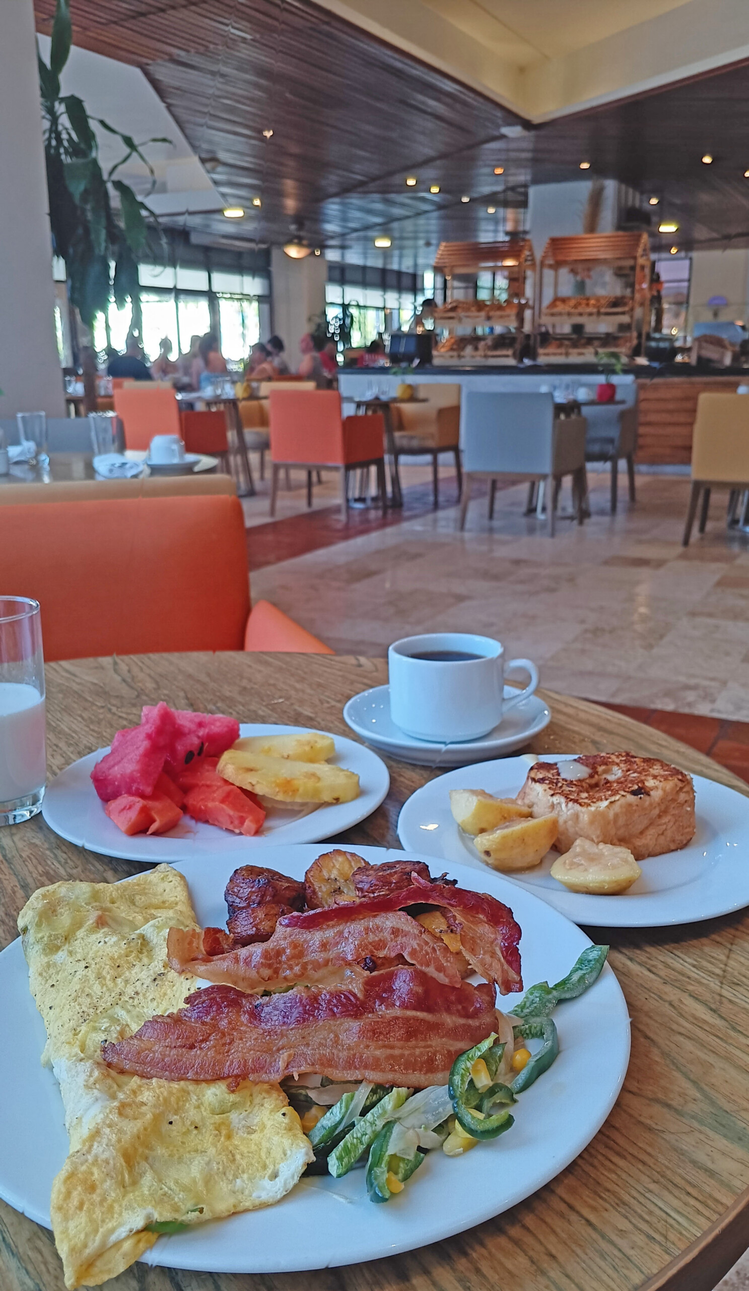 Anyway, Cocotal is the main breakfast (buffet only) place at El Dorado Royale, located below the lobby. Time it wrong, and you’re going to have to wait; fortunately, on the two days I timed it wrong, I headed to other places that almost entirely lacked patrons.